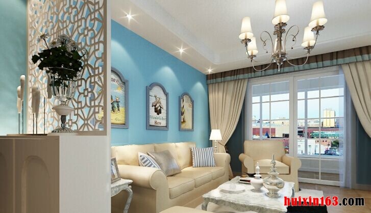 城市花园小区-123平方米-二居室-地中海风格装修效果图-客厅