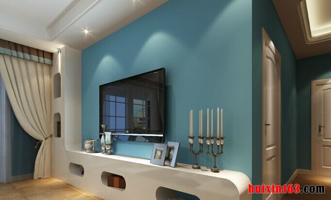 客厅中电视背景墙使用了蓝色的乳胶漆做装饰,简单的材质搭配上石膏板吊顶上的射灯光束,可以形成一种独特的效果,电视下方设计出了一款白色的矮柜,独特的造型可以起到一定的装饰效果,同时也可以提供更多的收纳空间,这样的设计更新颖,同时也更实用一些,餐厅中的设计比较大方,一款长形的餐桌摆放在中间,搭配上纯白色的座椅,更能突显出高贵感,两侧的墙壁依然以蓝色和白色为主,搭配上从窗口照射进来的阳光,更可以带给人们一种清新感,同时也可以让人们感受到地中海风格的魅力所在,在人们用餐的同时也可以欣赏窗外的美景,这也是本套房屋设计的一大亮点。