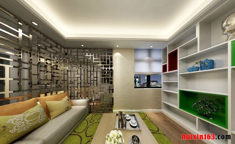 现代简约风的装修设计并不是简单的造型搭配以及格局布置,而是通过对细节精致的处理打造出来的效果,看似简单的布置也是通过设计师独具匠心的设计装饰出来的效果,哪怕有一点细微的瑕疵都可能影响到整个空间的效果,例如客厅的装饰布置,采用平顶式的石膏板吊顶,没有繁琐复杂的吊灯安装,让空间多出一份轻巧与灵活,个性的电视背景墙设计成收藏柜的形式,在装饰空间的同时,也增加了空间的收纳功能,在适当的摆放一些装饰品也为空间增添一抹艺术氛围,实木铺设的地板,搭配上浅青色的地毯,以浅色的色彩装扮空间,也将现代风的清新雅致感展现得淋漓尽致。