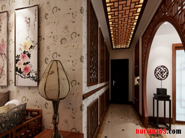 走廊的设计全是利用实木雕刻进行对称式的设计,让空间的庄严和装饰美感更具有逻辑可循,半圆形的实木雕刻装饰不仅起到装饰空间的作用,还能够把功能区和划分起到更好的规划。